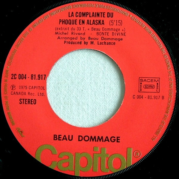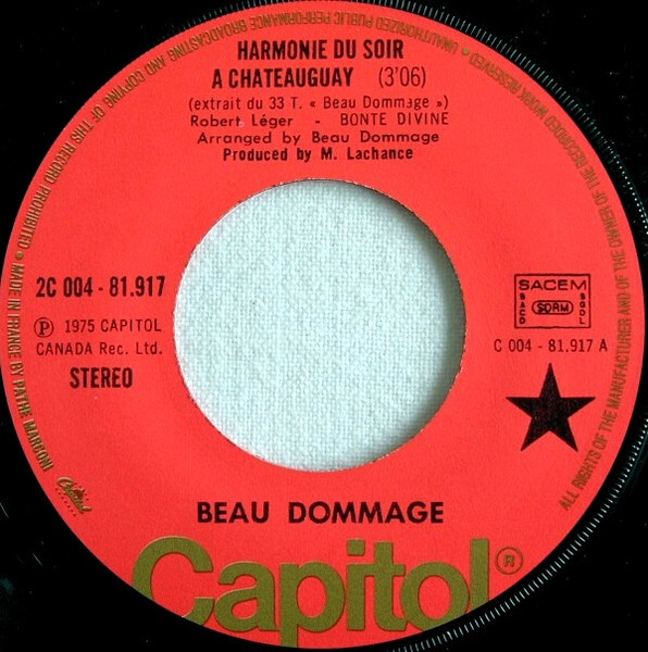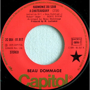 Beau Dommage - Harmonie du soir a Chateauguay b/w La complainte du phoque en Alaska (picture sleeve) (France)