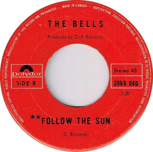 The mid-60s Montreal duo, Cliff Edwards and Anne Ralph, were persuaded to form a group. They added Anne’s sister Jacki Ralph on vocals, drummer Doug Gravelle and keyboard player Gordie McLeod. They named themselves The Five Bells. Shortly afterward Gordie McLeod left the group and Mickey Ottier became the groups drummer. In 1969 they released their first single called “Moody Manitoba Morning“. They continued to play clubs in Canada and landed an 11-week run at the Copacabana in New York. The group shortened their name to The Bells and Anne Ralph left the group, leaving Jackie Ralph as the featured female vocalist and Cliff Edwards the lead male vocalist.