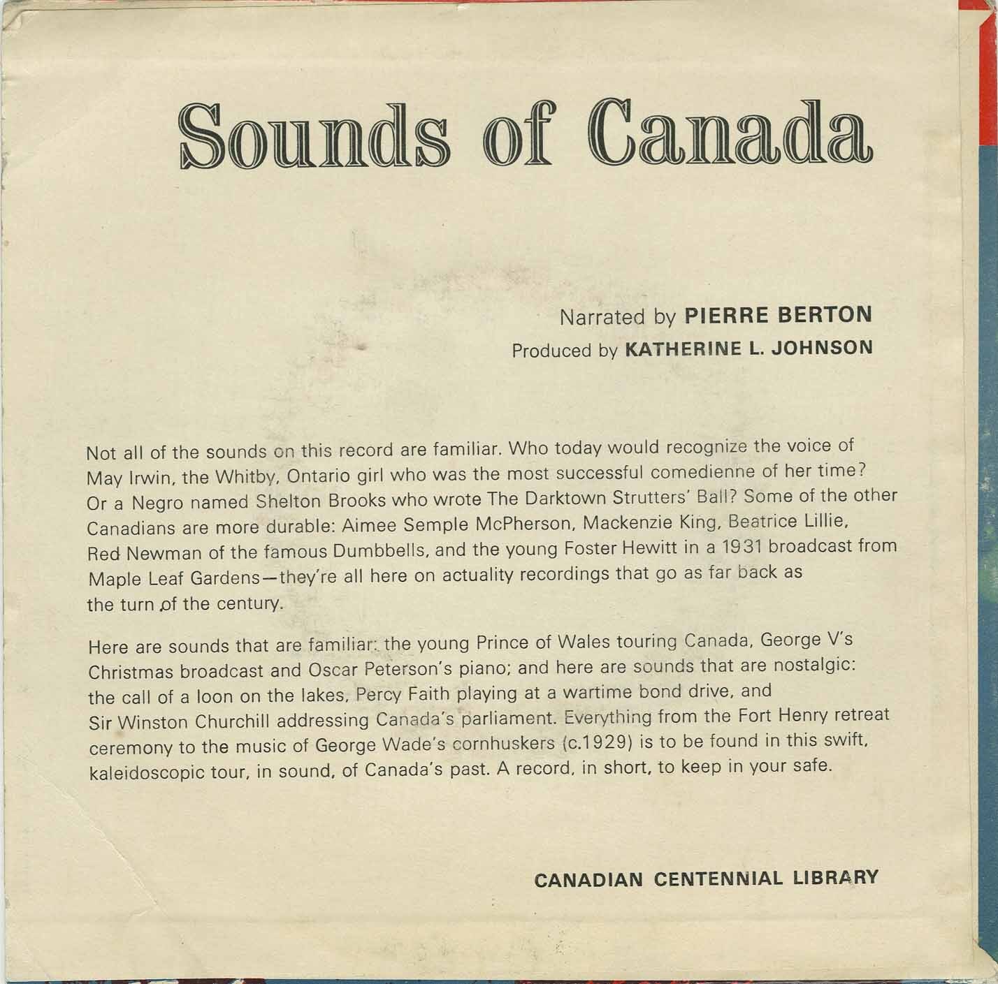 Label: Canadian Centennial Library MG 4087