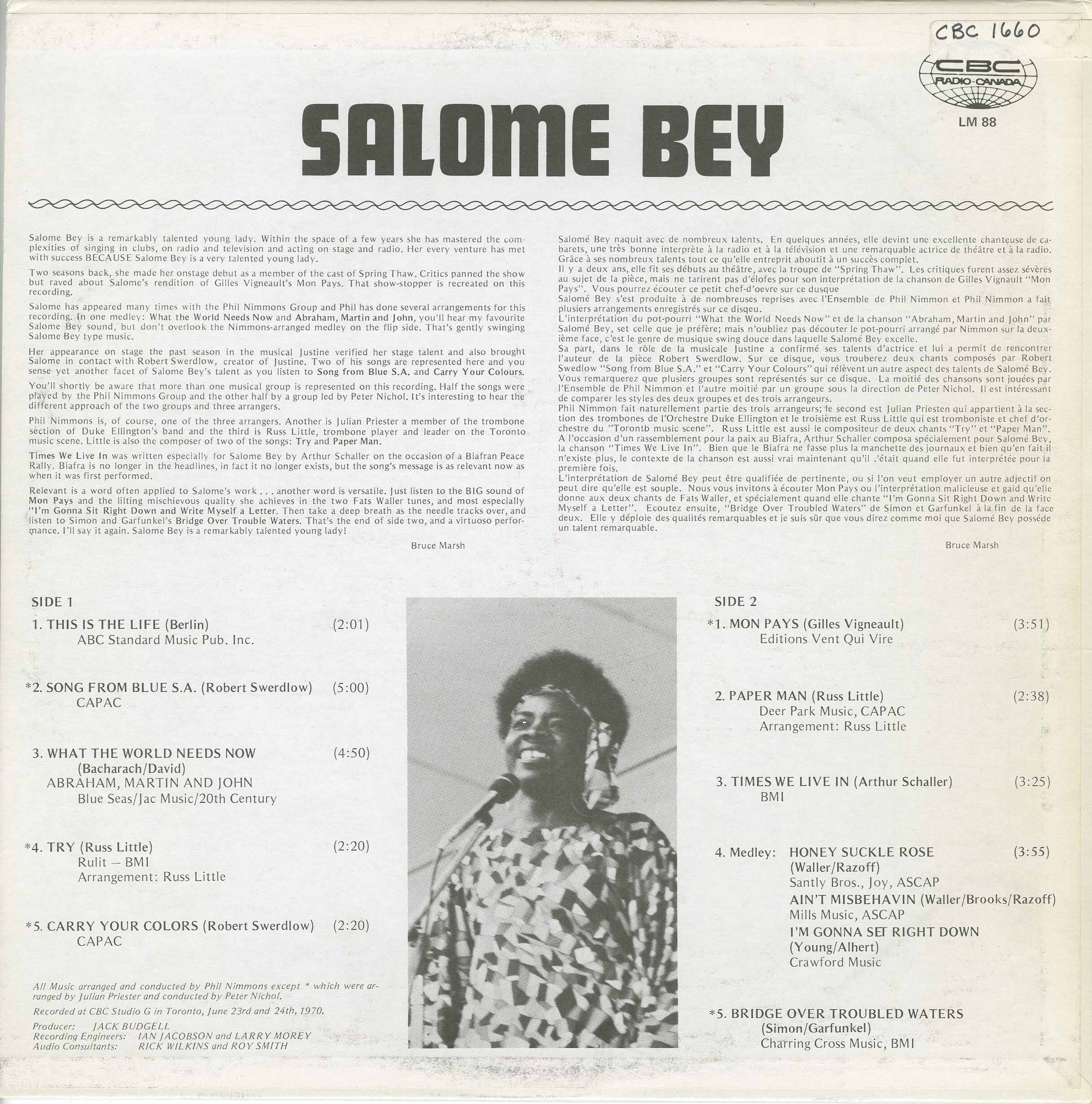 Bey never allowed herself to be confined to a single stage. She performed at the Montreux Jazz Festival, recorded live with the Montreal Jubilation Gospel Choir, and even shared musicians with hip-hop’s early pioneers—Run-DMC bassist and producer Larry Smith once held down her rhythm section. Her holiday special Salome Bey’s Christmas Soul became a CBC favourite, uniting her with artists like Molly Johnson and Jackie Richardson, while her participation in the all-star charity single Tears Are Not Enough placed her alongside Gordon Lightfoot, Joni Mitchell, and Bryan Adams as part of Canada’s response to the Ethiopian famine.