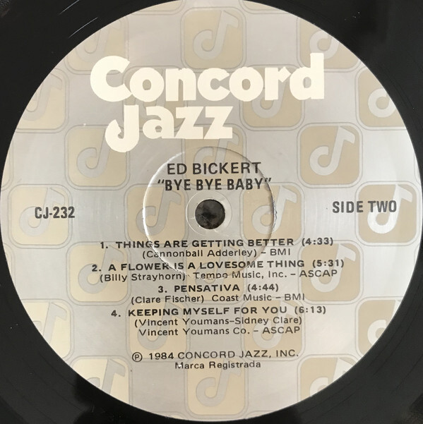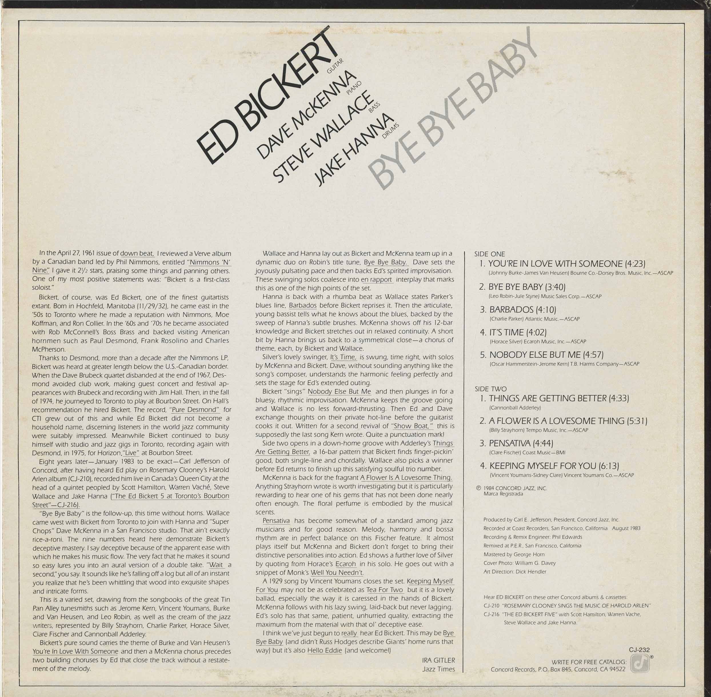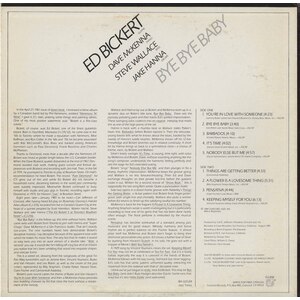 The release of “Bye Bye Baby,” which was taped at Toronto’s Bourbon Street in August 1981, is Bickert’s first U.S. Concord LP. Steve Wallace and Hanna lay out as Bickert and McKenna team up in a dynamic duo on Robin’s title tune, Bye Bye Baby. Dave uses the joyously pulsating pace and then backs Ed’s spirited improvisation. This sense of swing coalesces into one great interplay that marks this as one of the high points of the set.
