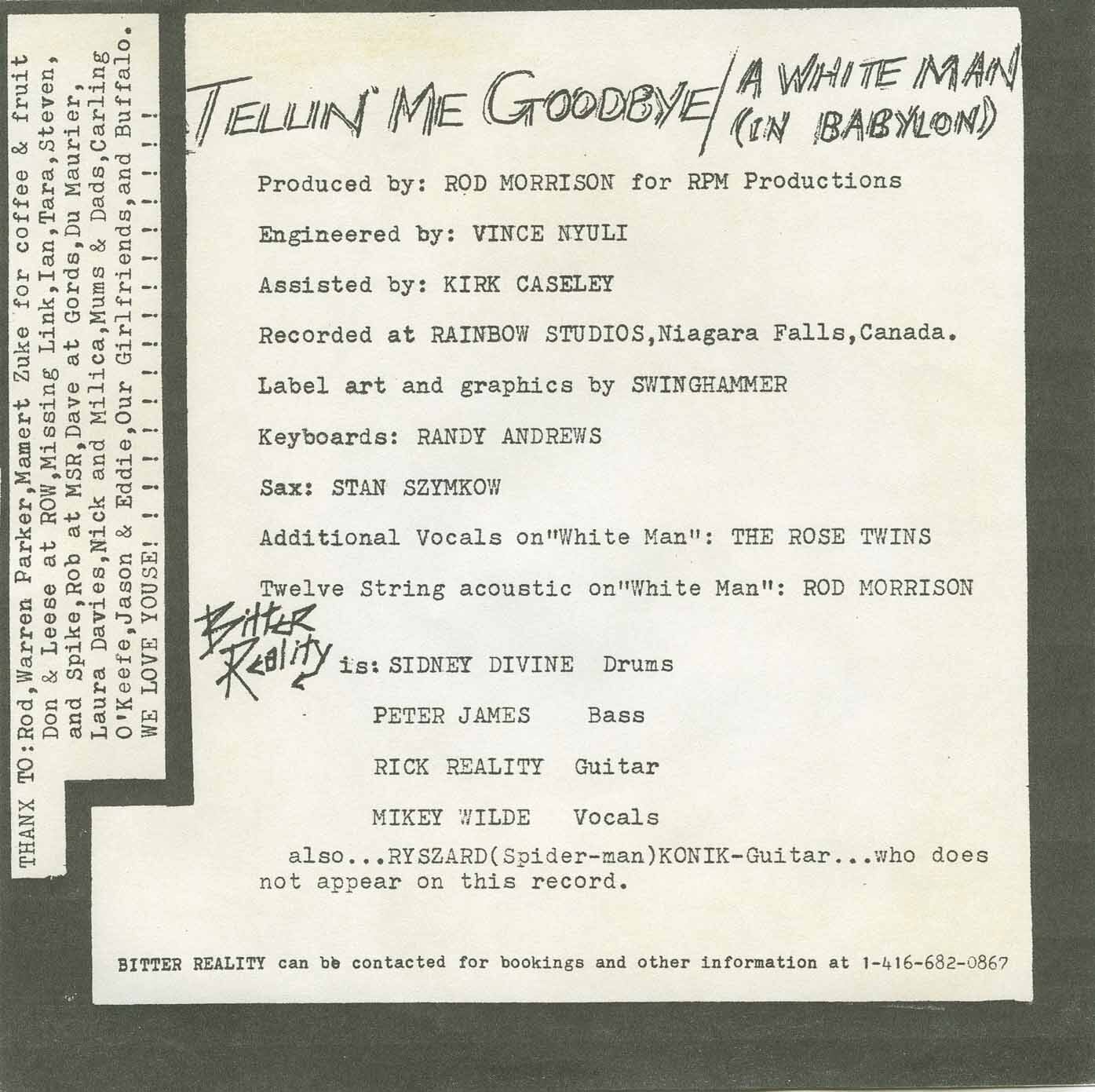 Bitter Reality - Tellin' Me Goodbye b/w A White Man (In Babylon)