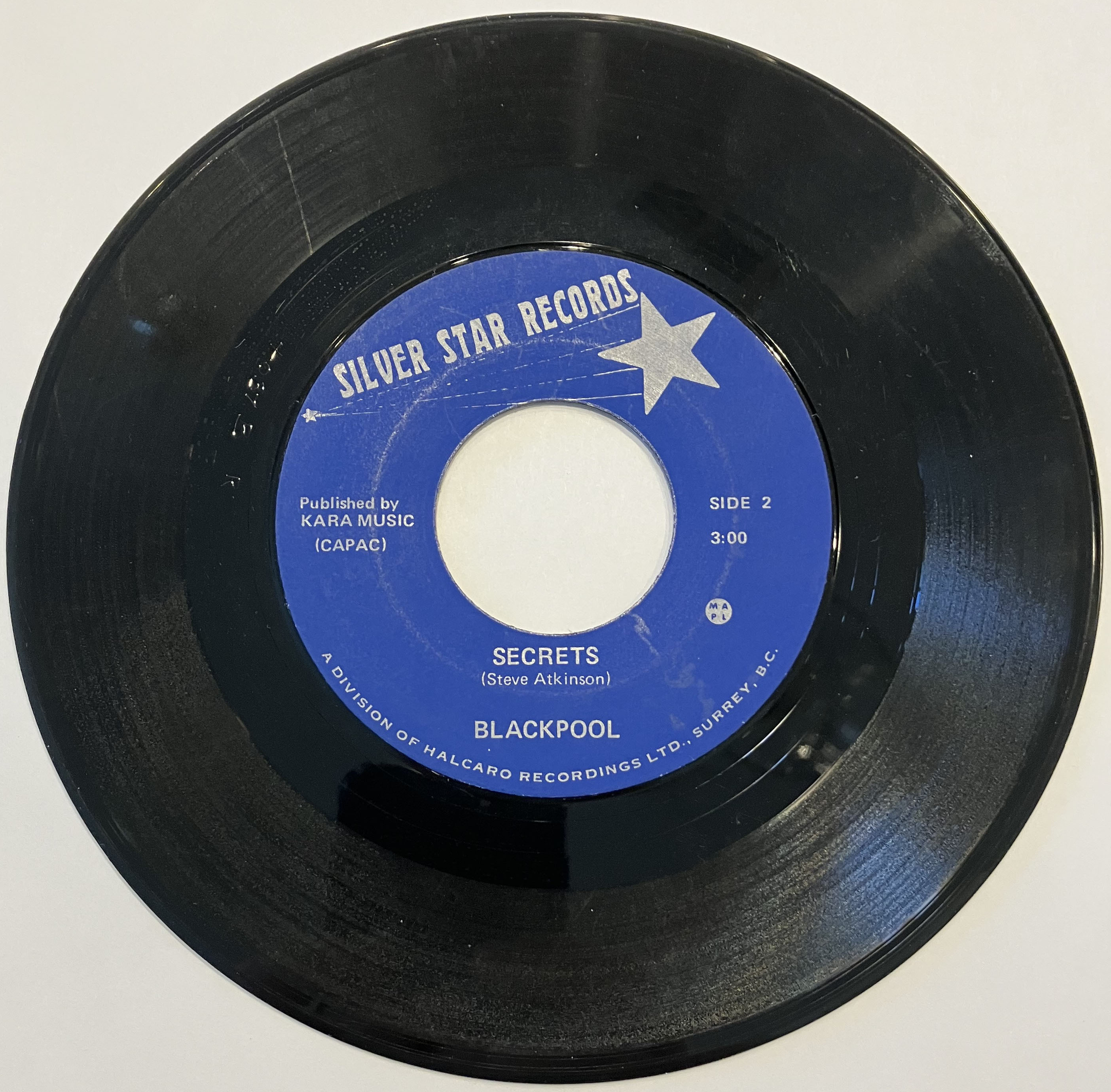 "Blackpool is a Vancouver based group, who have just released their first two singles, "Standing Over There" and "Secrets" on Silver Star Records, Halcaro Recordings, Surrey, B.C.