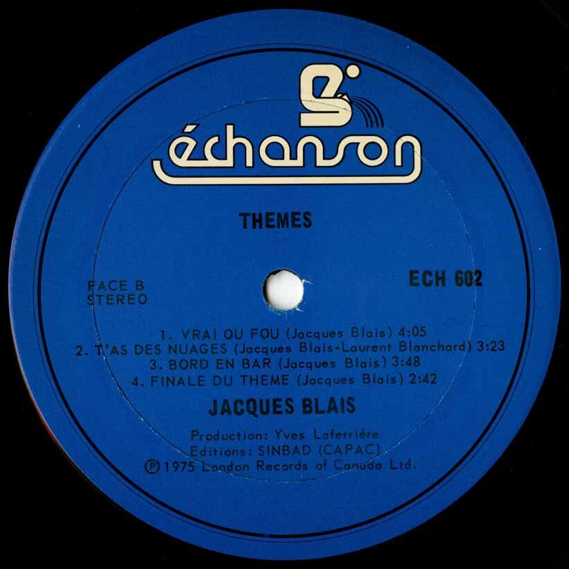 Upon its release, Thèmes received significant local acclaim, with tracks like "Sept Quatre" gaining airplay on stations such as CHOM and CKVL. The album was recognized as the "Experimental Album of the Year" by local media, highlighting its innovative approach within the genre. Blais' subsequent live performances, including appearances at L’Évêché, Hôtel Nelson, and the St-Jean-Baptiste celebrations on Mont-Royal, solidified his reputation as a leading figure in Quebec's progressive rock movement.