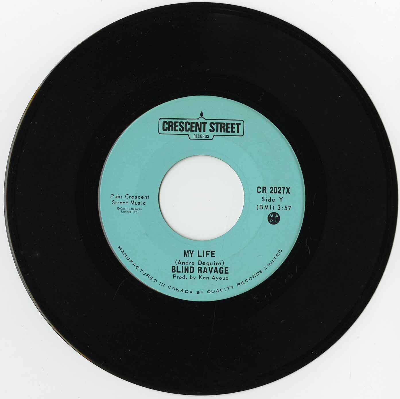 In 1971, the band recorded and released their only album, Blind Ravage, on the Crescent Street label. Produced by Ken Ayoub, the LP featured mostly original material, showcasing the band’s heavy riffs, driving rhythms, and gritty organ work. The Beatles' "Birthday" was the only cover on the album. The single “Loser” backed with “My Life” was also released, but despite the group’s efforts and strong live presence, the album didn’t achieve mainstream commercial success at the time.