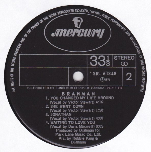 Brahman was a band from Vancouver that formed in 1971 and disbanded in 1972. They played at local clubs like Gassy Jacks Place in Vancouver’s historic Gastown. Robbie King, on organ, founded the band and went on to play keyboards with another Vancouver band called Chilliwack. David Lanz played piano, Duris Maxwell played drums, Paul Blaney played bass, Ed Patterson played guitar, Victor Stewart was the groups vocalist and Ian McKay performed as a mime when Brahman played in concert. Local Vancouver music critic/DJ, Richard Skelly, remembers Victor Stewart had “a big voice that sort of predated Eddie Vedder.”