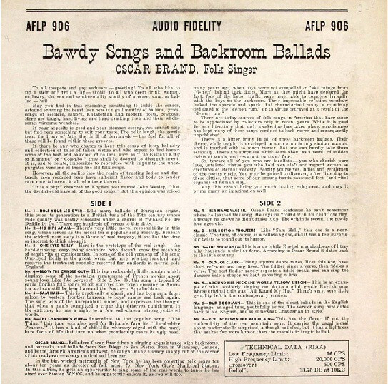 Brand, Oscar - Bawdy Songs and Back Room Ballads Vol 1