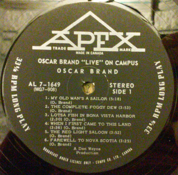 Brand, Oscar - On Campus Live Side 1