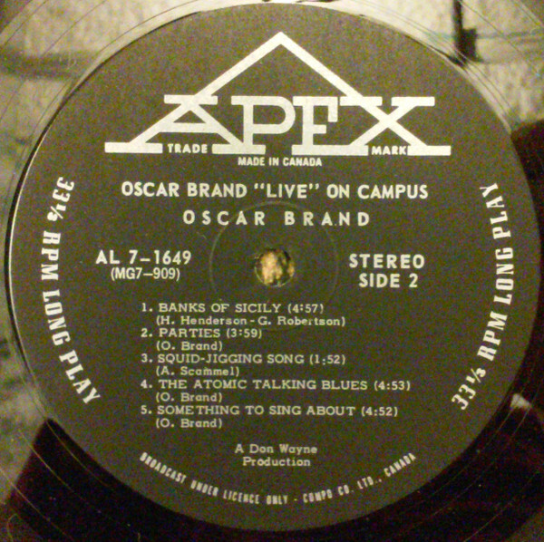 Brand, Oscar - On Campus Live Side 2