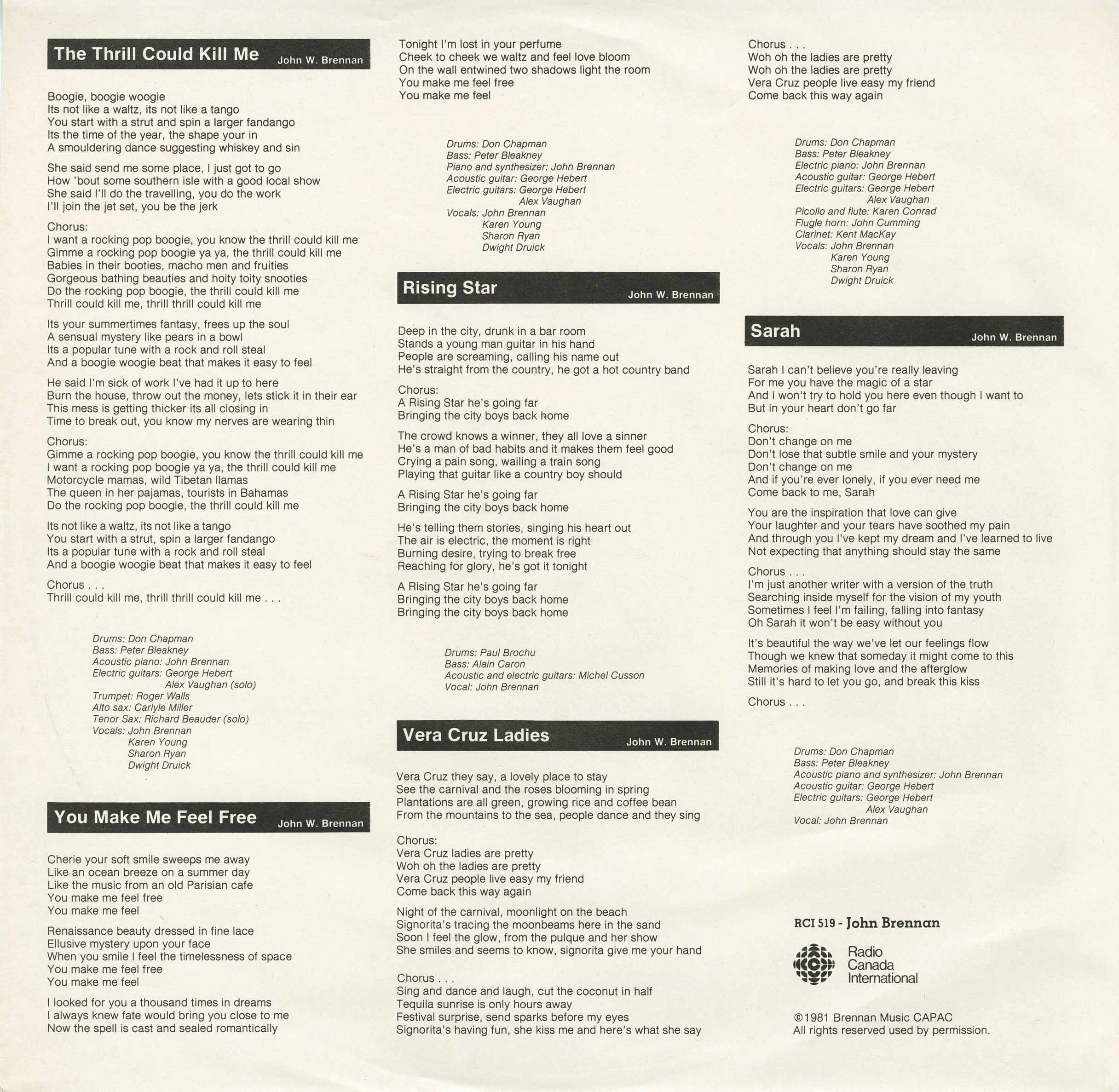 The liner notes described Brennan as “a number of other hats—that of entrepreneur, singer/songwriter, arranger, and producer,” recognizing both his creative breadth and professional drive. His music was praised for “rhythmically emphasizing the smoothness of his voice” and marking “the breakthrough of an emerging Canadian artist.” The bilingual sleeve underscored RCI’s mandate to showcase Canadian talent internationally, with Brennan representing a new wave of homegrown pop sophistication rooted in the Atlantic provinces.