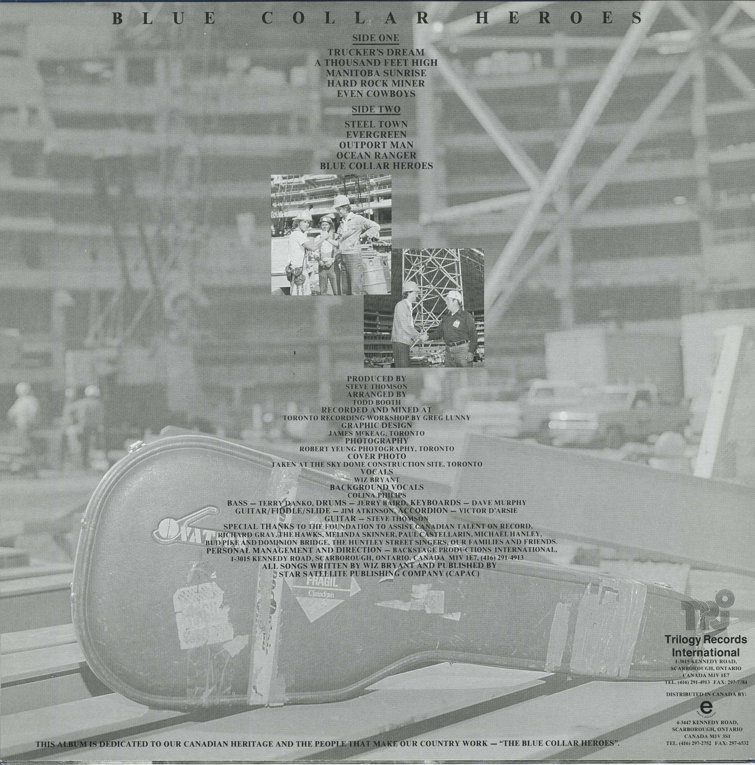 The songs on this album, all written and performed by Wiz Bryant, pay tribute to working men from all parts of Canada. A wide range of occupations and trades are represented, as befits the diversity of Canadians and their endeavours.