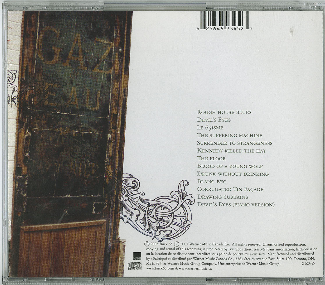This album delivers several much-needed elements that had always been missing from the original Buck 65 formula: songs (although there is still lots of room for improvement), melody, female voice, and lushness. There are also some serious bonuses in the form of world-class players like Tortoise and D-Styles; fresh ears provided by Head and Gonzales; and new blood provided by the addition of Claire Berest to the band. The only thing missing now? The original Buck 65 formula! Cripes...