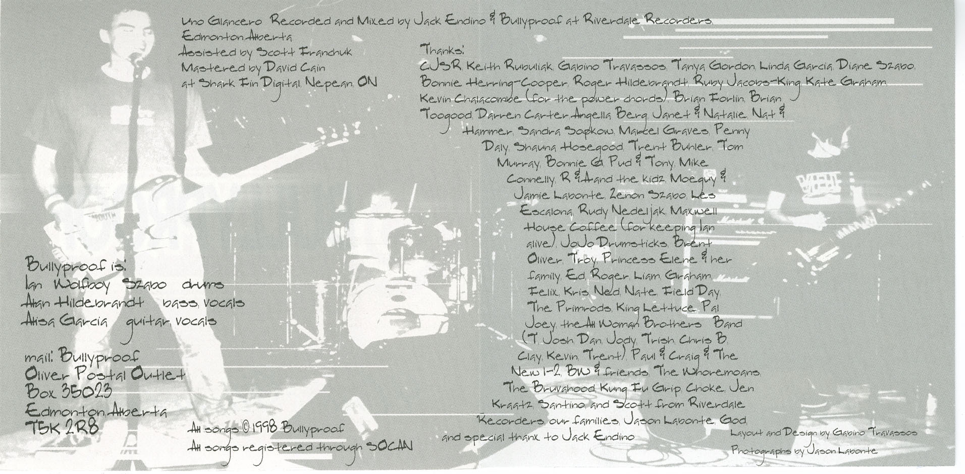 Recorded and mixed by Jack Endino and Bullyproof at Riverdale Recorders, Edmonton, Alberta