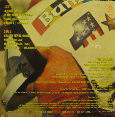 Recorded and mixed at JC/DC Studios, Vancouver, British Columbia by John Collins and David Carswell in Feb, 1995