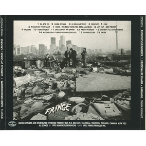 The band became notorious for its confrontational live performances, heavy alcohol consumption, and frequent conflicts both on and off stage. This reputation extended to their audience and contributed to their status as one of the most polarizing acts in Canadian hardcore. During the late 1980s, Bunchofuckingoofs released material on God Records and Fringe Product, placing them alongside labelmates such as the Dayglo Abortions within Canada’s most extreme punk output of the era.