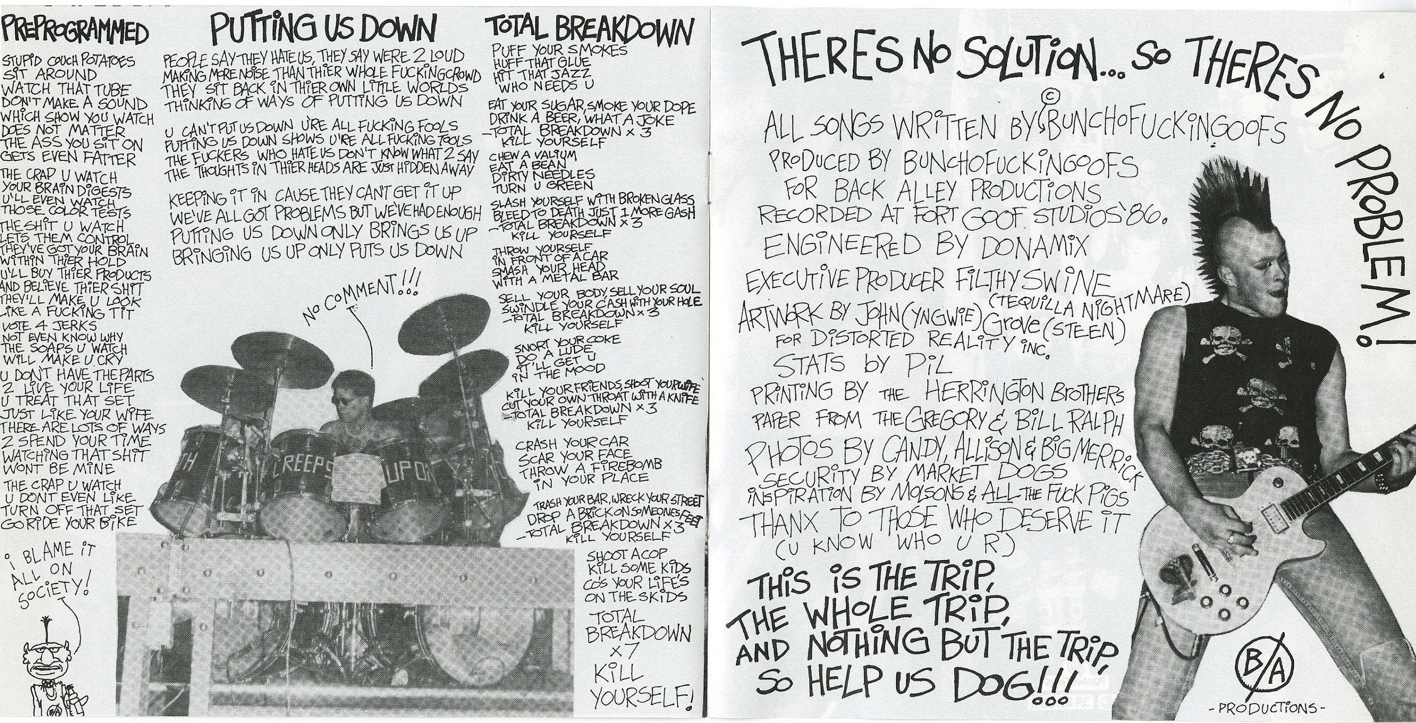 The band became notorious for its confrontational live performances, heavy alcohol consumption, and frequent conflicts both on and off stage. This reputation extended to their audience and contributed to their status as one of the most polarizing acts in Canadian hardcore. During the late 1980s, Bunchofuckingoofs released material on God Records and Fringe Product, placing them alongside labelmates such as the Dayglo Abortions within Canada’s most extreme punk output of the era.
