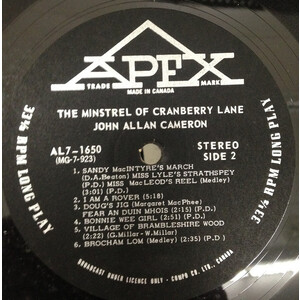 Cameron, John Allan - The Minstrel of Cranberry Lane Side 2