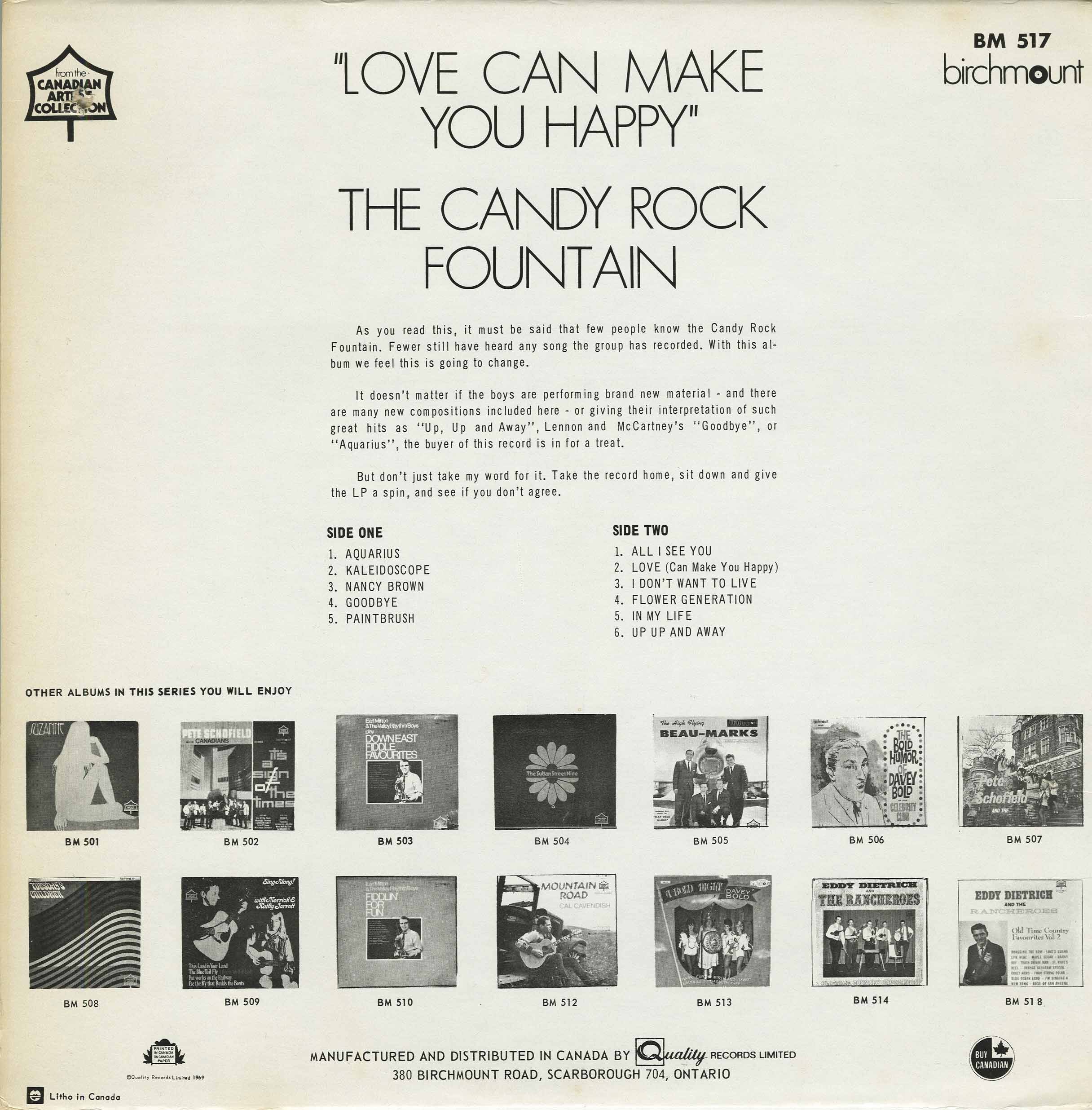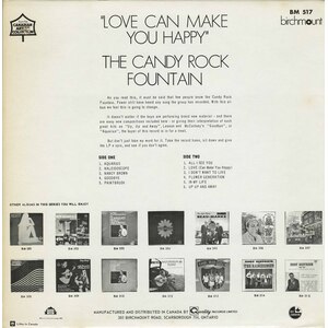 Among the more unusual artifacts in the Birchmount Records catalogue is Love Can Make You Happy by Candy Rock Fountain, a sunshine-pop flavored instrumental album released in 1969. Like many of Birchmount’s earliest titles, it was not the work of a standing band at all but rather a studio creation assembled by producer, songwriter, and arranger Greg Hambleton.