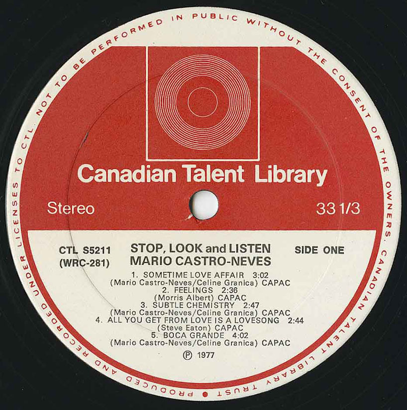 Label: Canadian Talent Library CTL 5211, World Record Corp. WRC-281