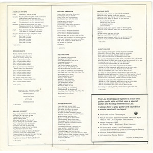 liner notes: The Lou Champagne System is a real time guitar synth solo act that uses a special guitar and hook up invented by Lou. It allows him to play guitar and sound like a whole band with no tapes!