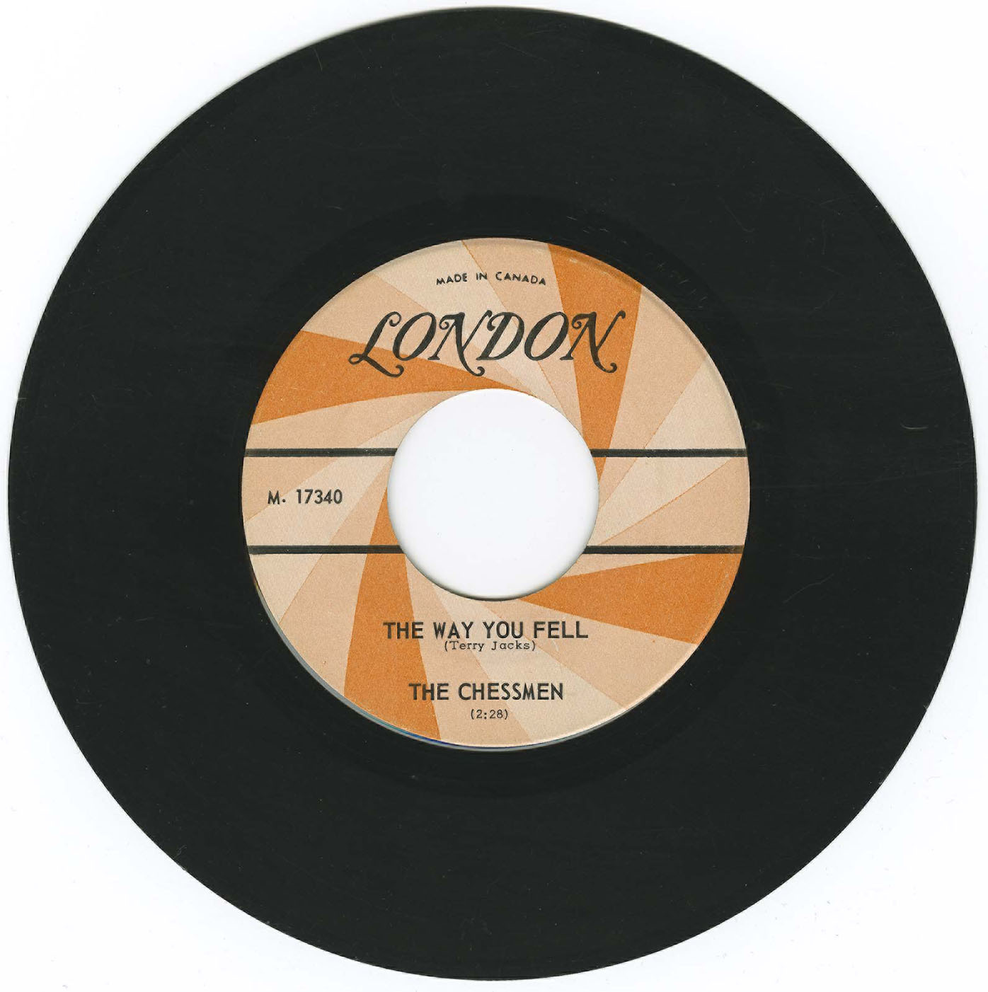 With Al Wiertz now on drums, ‘The Way You Fell’ b/w ‘She Comes By Night’ was recorded at Vancouver Recording Studio and released by London Records in April 1965. The single became one of The Chessmen’s biggest successes, reaching #4 on Vancouver’s CFUN Top 50, and firmly establishing Jacks as the band’s frontman.