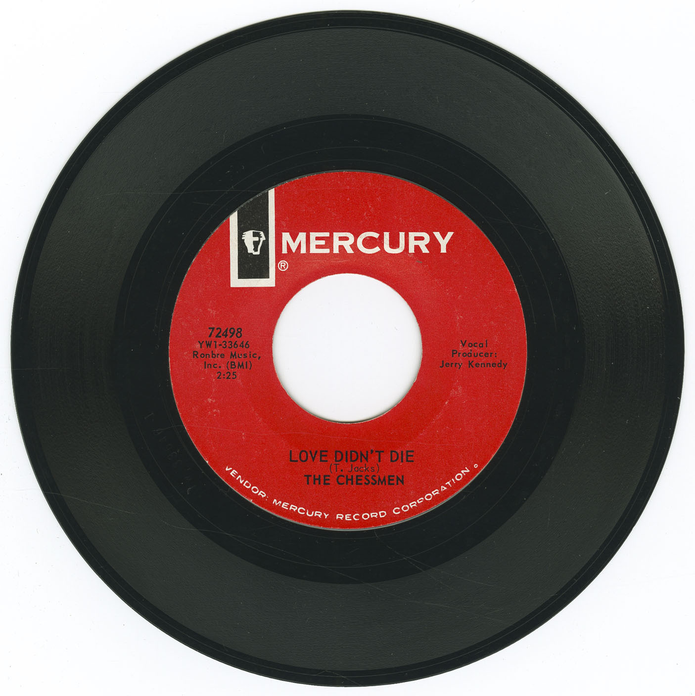 1965 proved pivotal. Jacks befriended Brenda Lee and her manager Dub Allbritten after seeing her perform at Vancouver’s Cave Supper Club. Allbritten—already a major figure in Nashville, having worked with artists such as Red Foley, Hank Snow, Ernest Tubb, Roy Orbison, and as co-writer of Lee’s ‘I’m Sorry’—offered to manage The Chessmen. Under his guidance, the band signed with Mercury Records in the United States and recorded four songs in Nashville with producer Jerry Kennedy, known for his work with Roger Miller, Jerry Lee Lewis, and Charlie Rich.