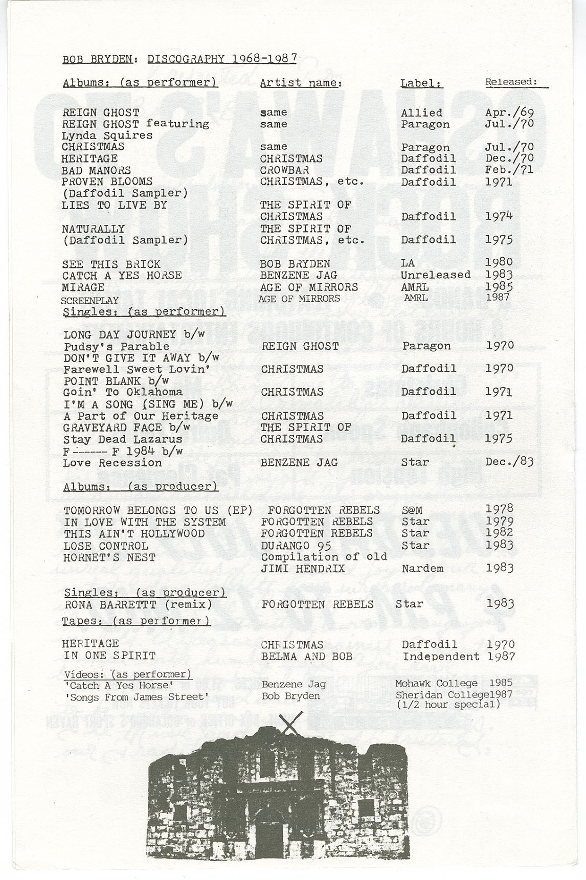 Someone once told me they thought that this was early punk. Well, perhaps prog-punk might be more accurate. This is the original studio mix I did of the raw board (cassette) tape from our Sept. 23, 1971 concert at Massey Hall opening for Crowbar. This is not to be confused with the inferior, unmixed version released on CD by Unidisc records. This version was authorized by Frank Davies of Daffodil Records in 1989 for release on a limited edition cassette and vinyl run. (100 cassettes and approximately 315 vinyl albums on the RTA ['Remember the Alamo'] label). This version is superior to the Unidisc rendering due to editing and adding of 'room' sound to more accurately reflect the ambience of a concert performance. The bandcamp edition only contains the 'live' tracks. It does not contain the Daffodil studio recordings listed on the original packaging.