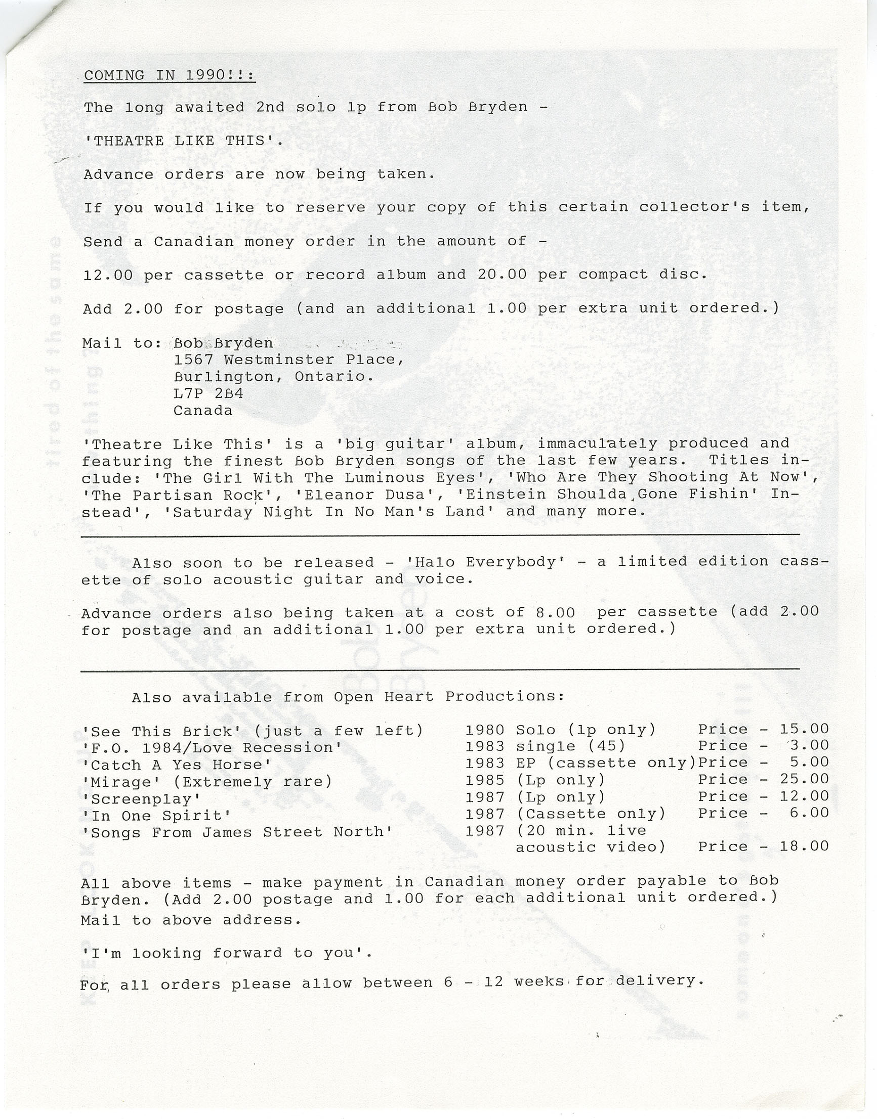 Released in a limited edition of 316 hand-numbered copies, signed by Bob Bryden on the back. It included an 8-page booklet and 2 inserts. Written by Bob Bryden in 1970-1971, the music is heavy guitar driven hard psych rock.