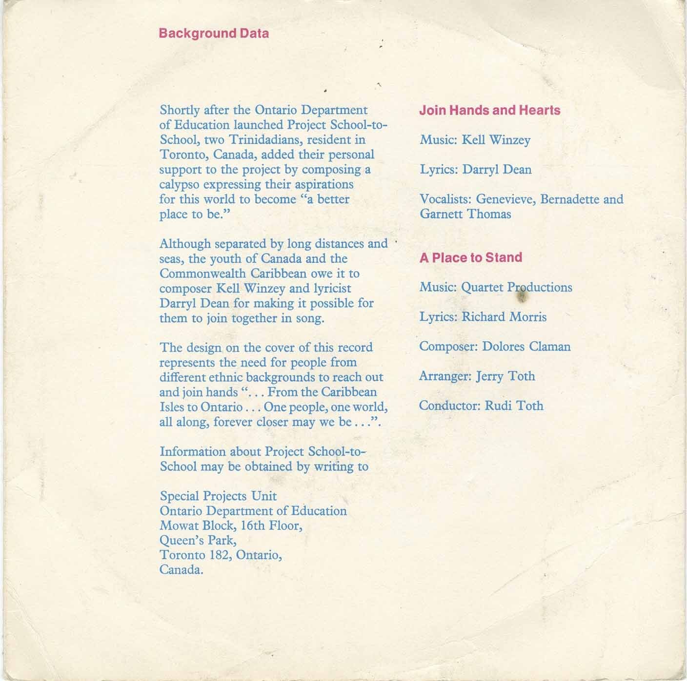 Claman, Dolores - A Place to Stand: Ontario Theme Expo 67, conducted by Jerry Toth (split with Kell Winzey & Darryl Dean)