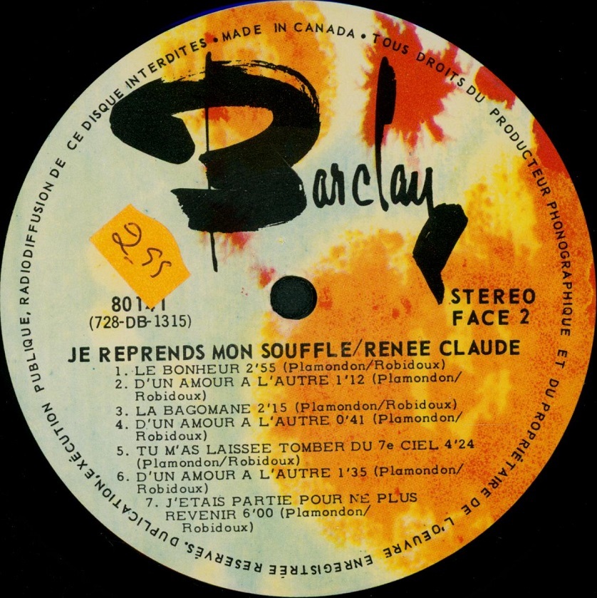 Je Reprends Mon Soufle Record sleeve (front)