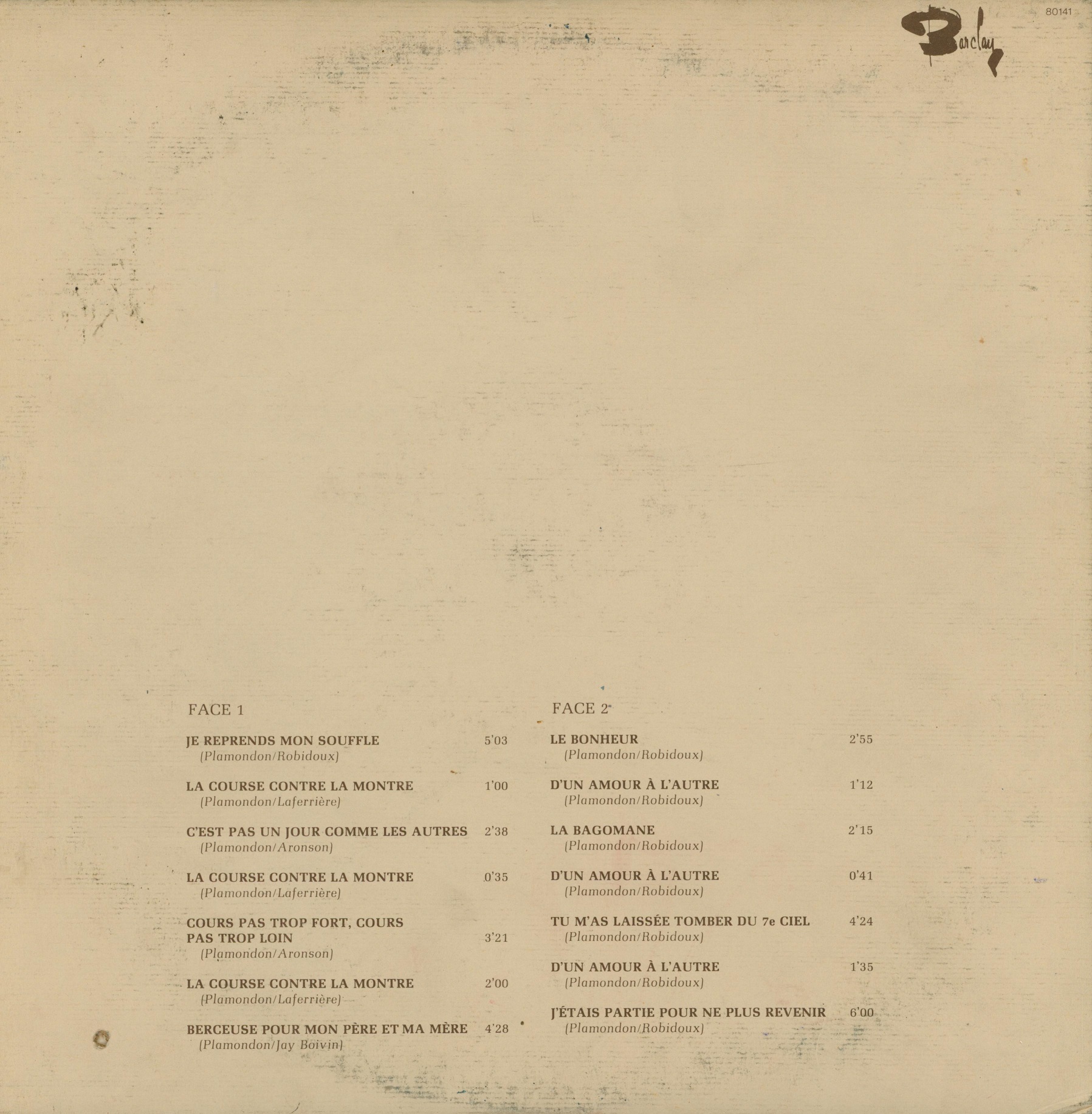Je Reprends Mon Soufle Record sleeve (back)