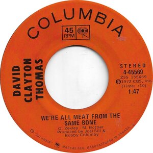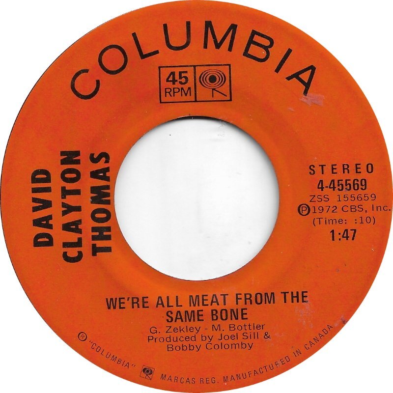 Clayton-Thomas, David - Sing A Song b/w We're All Meat From The Same Bones