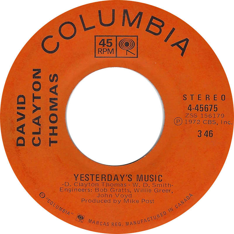 Clayton-Thomas, David - Yesterday's Music b/w Failing by Degrees