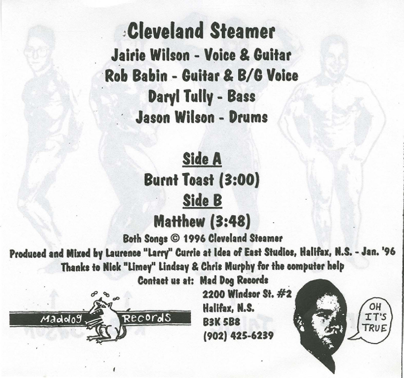 Produced and mixed by Laurence "Larry" Currie at Idea Of East, Halifax, Nova Scotia, Jan 1996