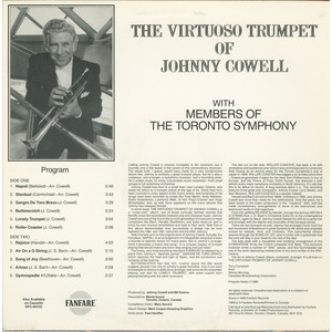 In some ways, The Virtuoso Trumpet of Johnny Cowell is a “cross-over” album, one of those curiously defined records that literally cross the boundaries between pop and classical music. Johnny Cowell was one of the first in the current generation of musicians to meet composers like Bach, Handel, Beethoven, and Satie head on, and to bring his own musical sensibilities and style to their work. Side Two of this album demonstrates how successfully a bridge can be built between the 18th and 19th centuries and the 20th century.