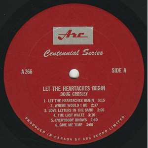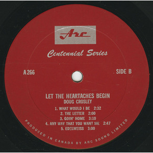 Crosley’s breakthrough in the U.S. came when he performed on The Bell Telephone Hour at the Brooklyn Theatre in New York City. This exposure led to a recording contract with RCA Victor, and in 1965 he released his debut LP New Star in Town, arranged by Jack Pleis, Charles Fox, and Marty Manning. The album showcased his romantic balladeer style and featured a blend of contemporary pop and American standards. His follow-up album, Let the Heartaches Begin (Arc AS 266), was released as part of the Arc Centennial Series and featured renditions of contemporary hits and originals.