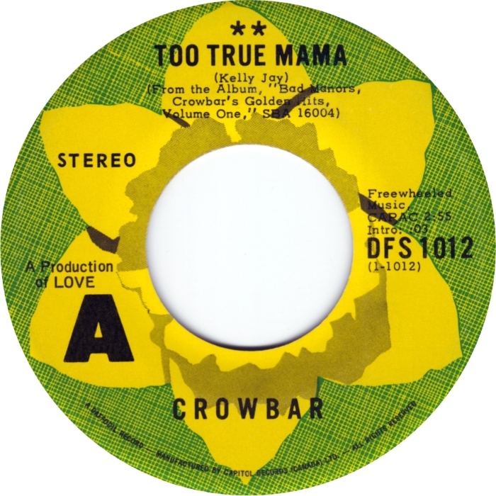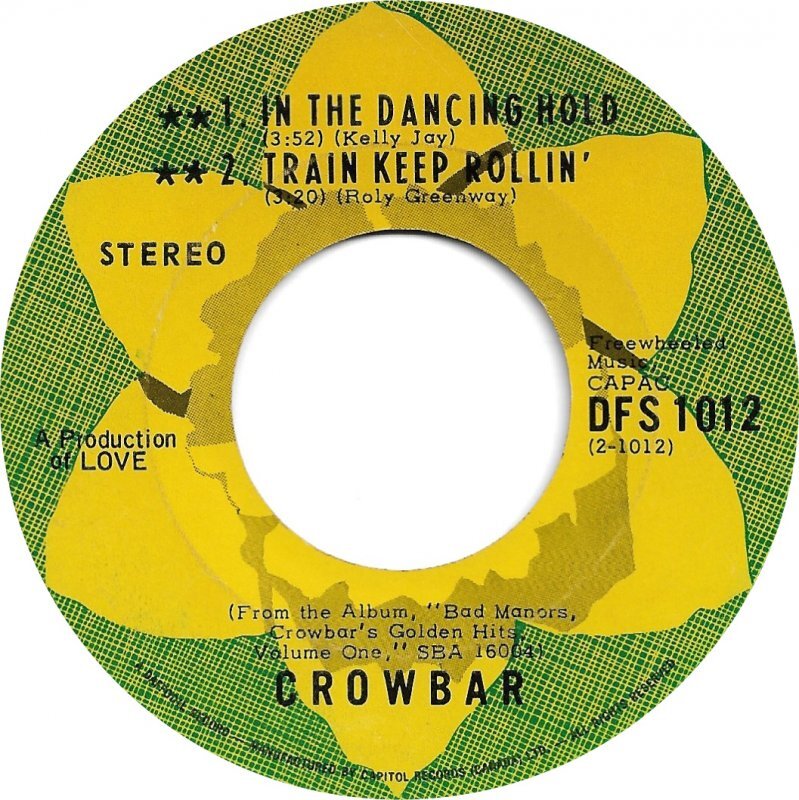 Crowbar - In the Dancing Hold/ Train Keep Rollin' b/w Too True Mama (picture sleeve - Canada's first 3-sided single)