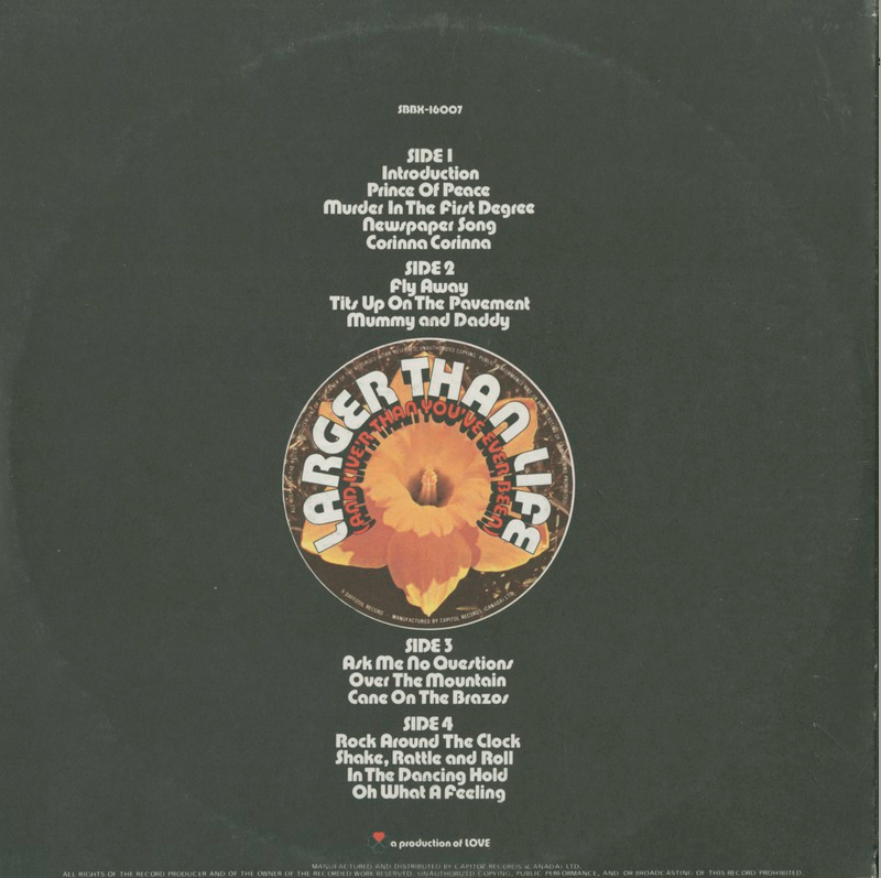 Double LP live set recorded at Massey Hall in Toronto, 1971, and broadcast live on Toronto radio.