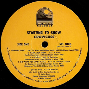 I had met the group Crowcuss out of Winnipeg which included two former members of The Guess Who, Bill Wallace and Greg Leskiw in Edmonton in 1976. They had been formed from remnants of the groups Mood Jga Jga which included Greg and Hermann Fruhm and Musical Odyssey which included Marc and Larry. I had been knocked out by their sound. In those days, in the bars, it was somewhat unusual to see a band playing mostly their own material but this was one of them. I sat in on a couple of their gigs in Calgary during the latter days of my tenure at Sound One. In October '78, Hermann gave me a call asking if I'd like to audition for the guitar chair which Greg had vacated. They had been playing as a four piece unit without guitar and had signed with and recorded the album "Crowcuss" for Holger Peterson's Stony Plain Records. I jumped at the chance and was accepted into the band in late '78.