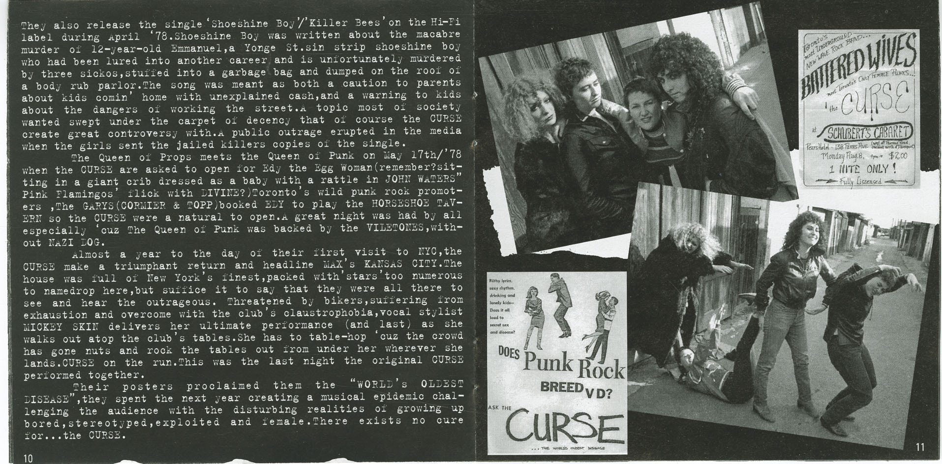 The Curse played with John Waters’ “Egg Woman” at the Horseshoe Tavern in May 1978, opened for the Plasmatics’ Wendy O. Williams, and even performed with CEAC artists in Detroit, where they were theatrically “executed” by a fellow performance artist while “Happiness Is a Warm Gun” played. Despite these standout moments, their chaotic energy soon took its toll. Internal tension, exhaustion, and clashes with the conservative club scene eventually pushed them to the brink.
