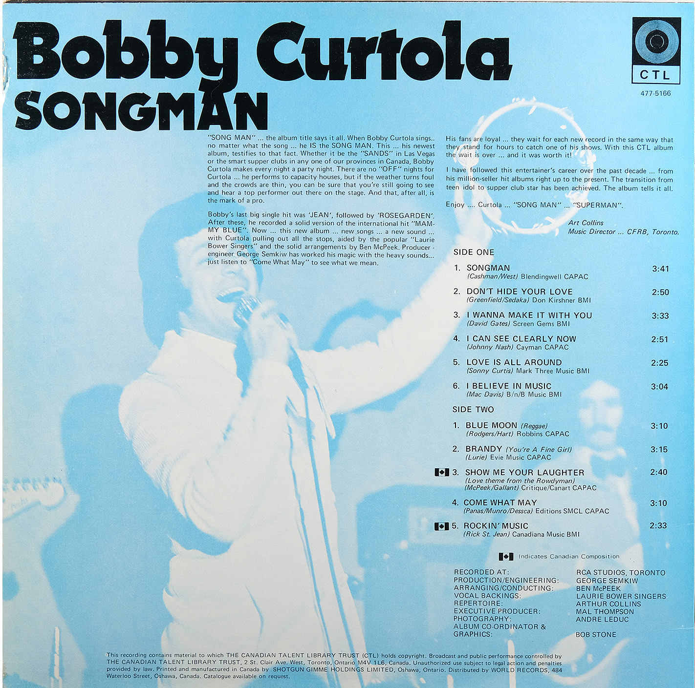 As the 1970s dawned, Curtola transitioned smoothly into the world of adult entertainment, in the tradition of Frank Sinatra and other crooners. A 1972 album for the Canadian Talent Library showcased his more sophisticated style, and soon he was headlining showrooms for the Howard Hughes hotel chain—a lucrative gig that lasted more than twenty years.