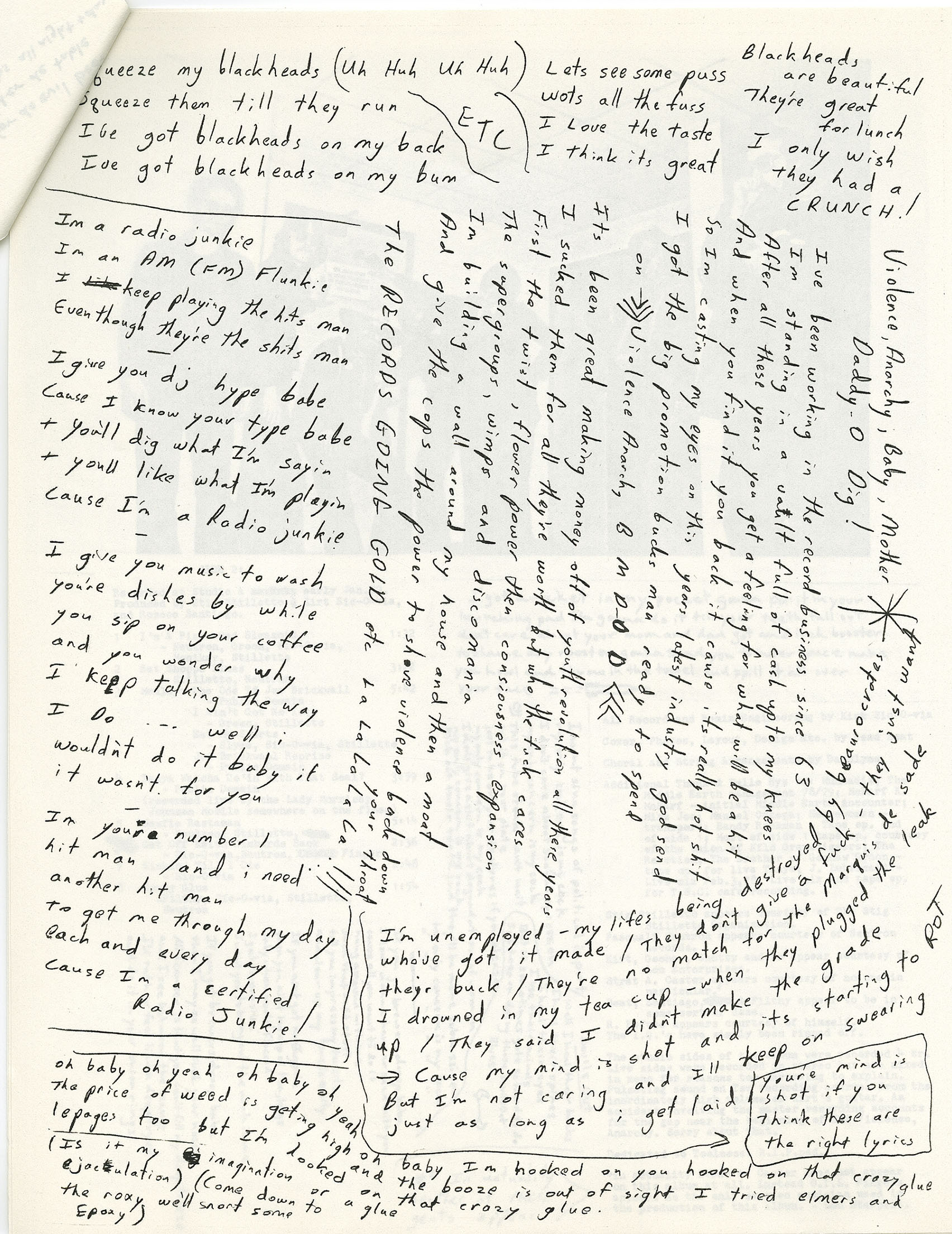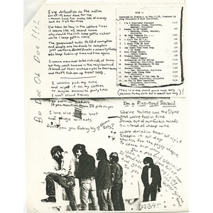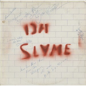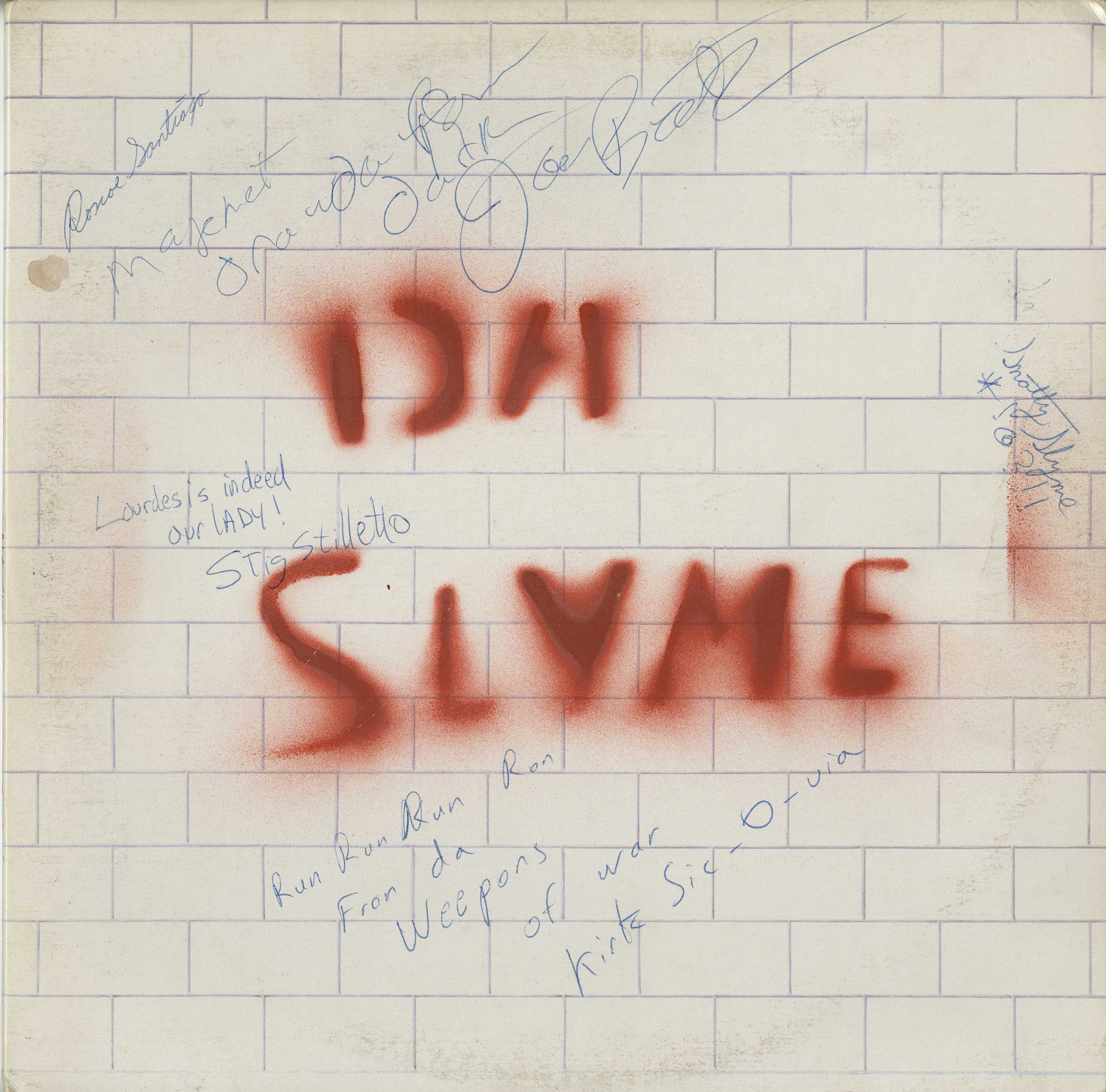 The album was released in 1980 and was comprised of 2 lp’s (first punk 2lp released in Canada); one studio, one live, as well as extensive DIY style liner notes. After cutting the lp’s, Da Slyme ran out of cash so they went down to the local Salvation Army, bought some cheap albums for 25 cents each, spray painted the covers and housed the albums in a brown paper bag cover. Some of the albums that they spray-painted were Mr Dressup, Pink Floyd, Chris DeBurgh, Carlton Showband, Donna Fargo, The Bell Jubilee Sound, and Kris Kristofferson. (MoCM owns the Pink Floyd, Mr. Dressup and Kris Kristofferson copies). This particular copy shown is somewhat unique, likely one of only a couple signed by all the band members: The music itself is raw punk, ska, reggae, etc.