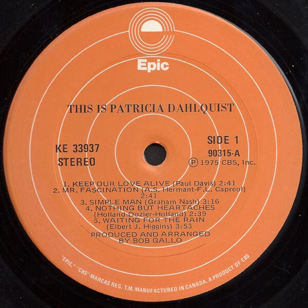 She released a single in 1975 called Keep Our Love Alive (Columbia C4-4095) which spent seven weeks in the Canadian top 40. It entered July 5, 1975 and peaked at number 20 on September 27. She also released the album "This is Patricia Dahlquist" that same year.