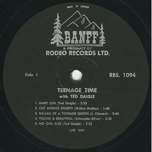 Released in 1961 on Banff Records, Teenage Time is one of the rarest and most sought-after Canadian rockabilly albums, marking Ted Daigle’s full immersion into the genre. While Daigle would later gain recognition as a country artist and radio personality, this album firmly establishes him as one of Canada's earliest rockabilly pioneers.