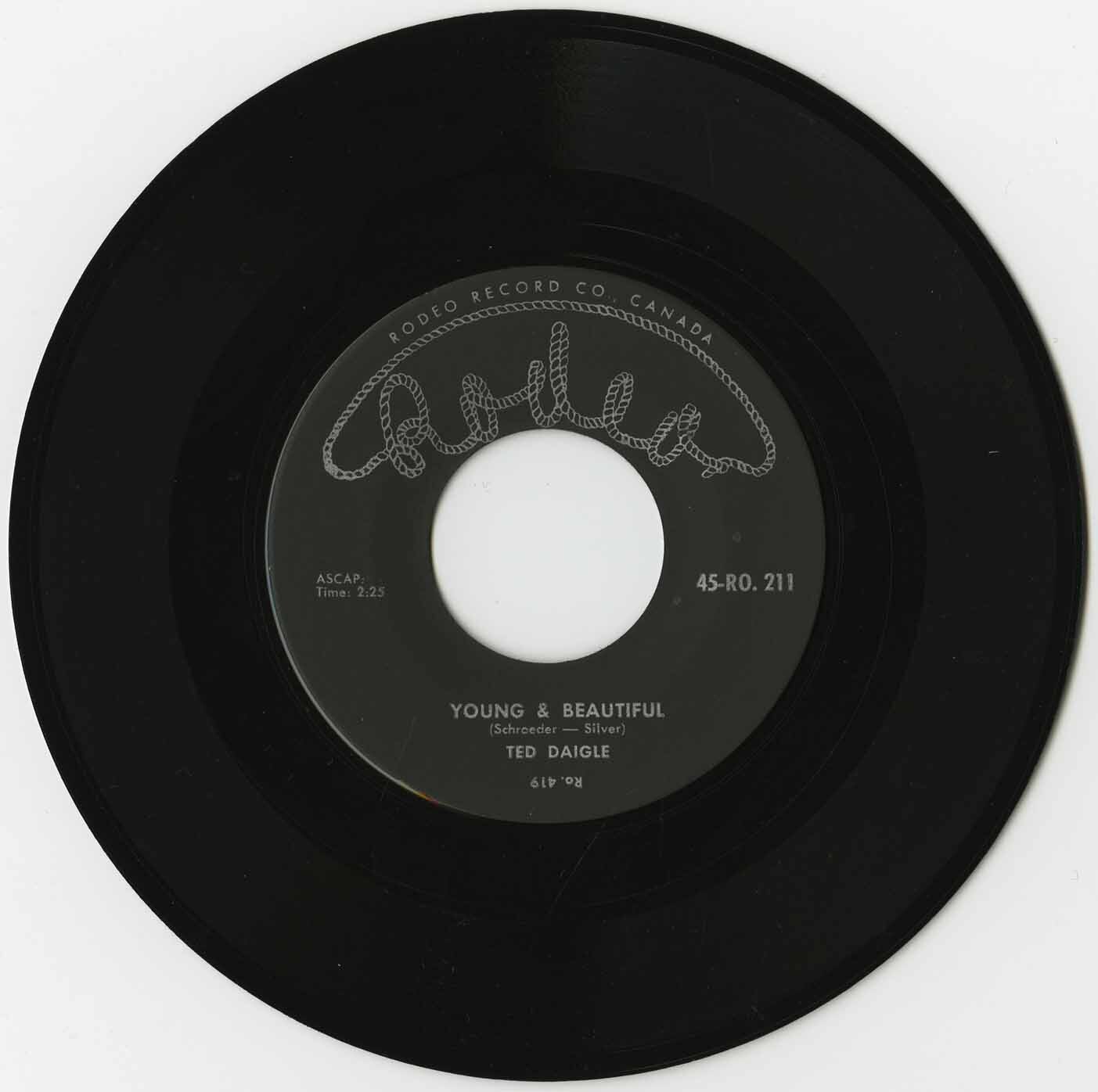 Released in 1959 on Rodeo Records, Young & Beautiful / Bitter Tears marks one of Ted Daigle’s earliest studio recordings, offering a glimpse into his evolving sound as he transitioned from country crooner to rockabilly pioneer. While Daigle would later gain recognition for his high-energy rock & roll recordings, this single finds him firmly rooted in country music, delivering a mix of smooth balladry and heartfelt storytelling.