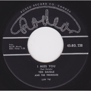 Released in 1960 on Rodeo Records, I Miss You / In A World Of Our Own captures Ted Daigle in the midst of his transition from early country recordings to the emerging rock & roll sound. Backed by Bathurst, NB’s first rock & roll band, The Tremolos, this single showcases Daigle’s smooth yet commanding vocal style, set against a backdrop of tight instrumentation and a mix of country and rockabilly influences.