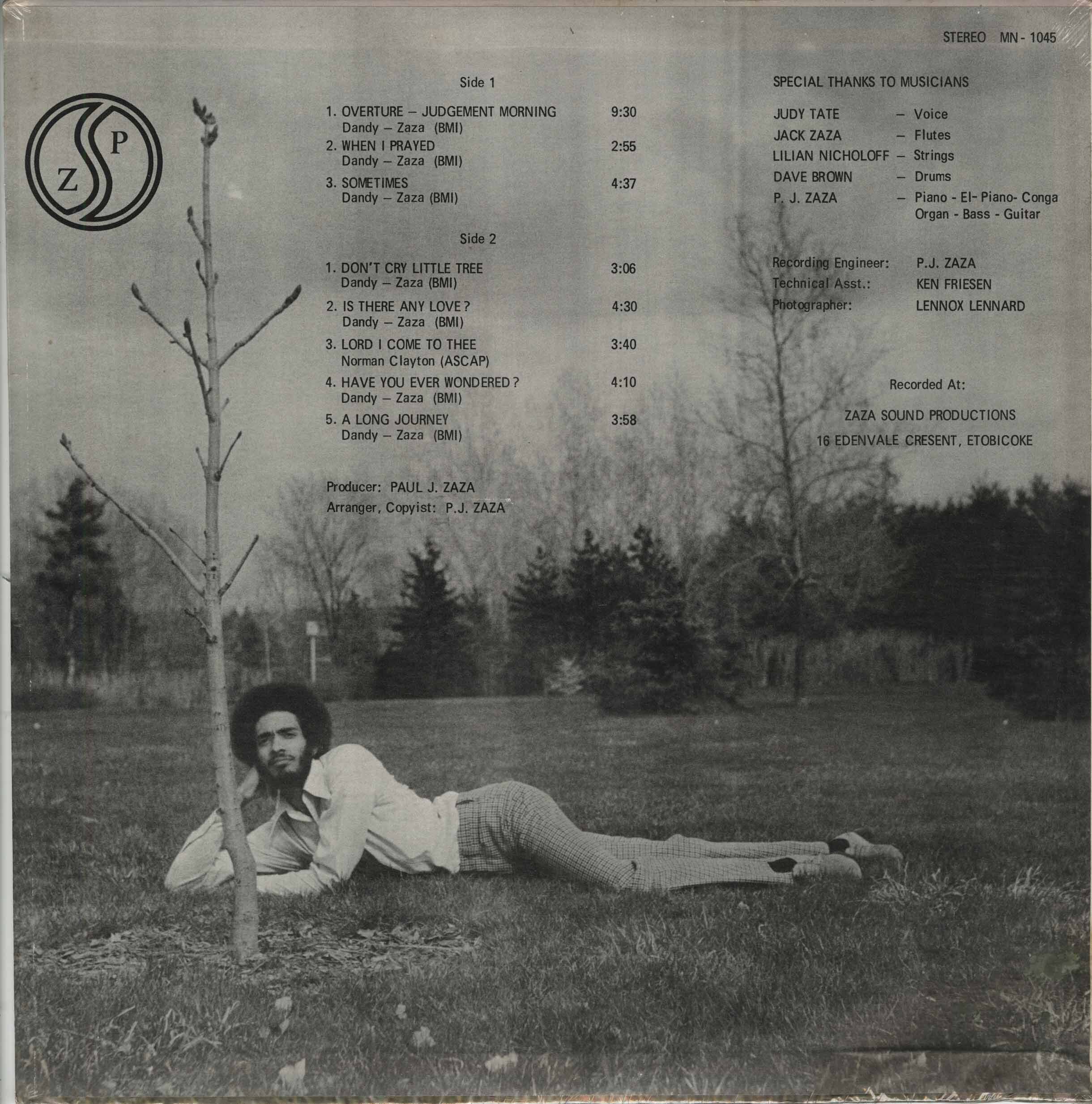 Recorded at Zaza Sound Productions, 16 Edenvale Crescent, Etobicoke, Ontario