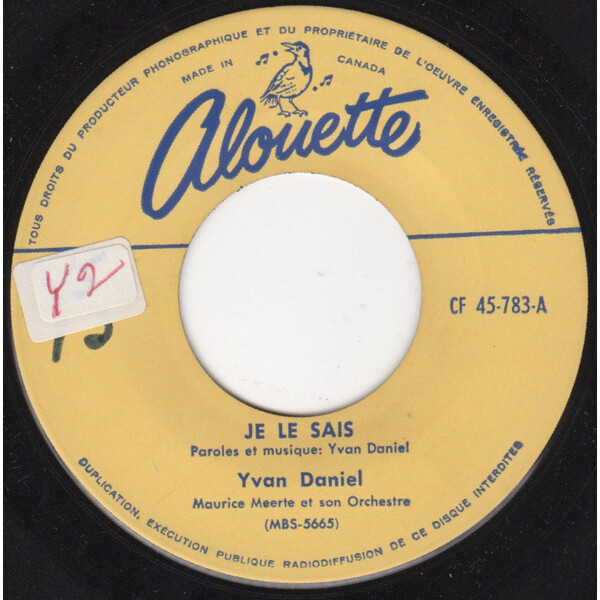 Daniel, Yvan - Je Le Sais b/w Buonanotte