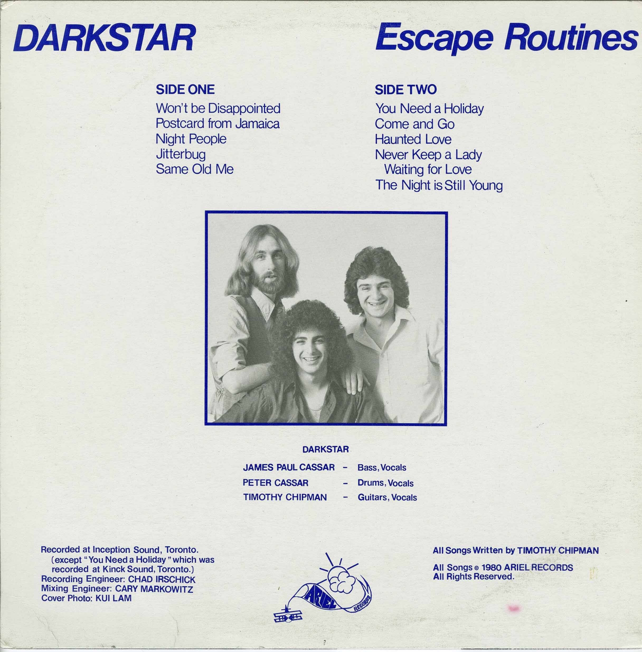In 1979 they rebranded themselves briefly as The Foxrun Band, bringing in saxophonist/vocalist Margo Davidson to enrich their sound. They recorded You’re Invited, an album that kept the core Darkstar DNA while aiming to widen their appeal. Yet again, success was modest. In 1980, they reverted to Darkstar and issued Escape Routines. A single from this album, “Postcard from Jamaica”, got some local chart traction and landed them more prominent gigs, though follow-ups didn’t build on that momentum.