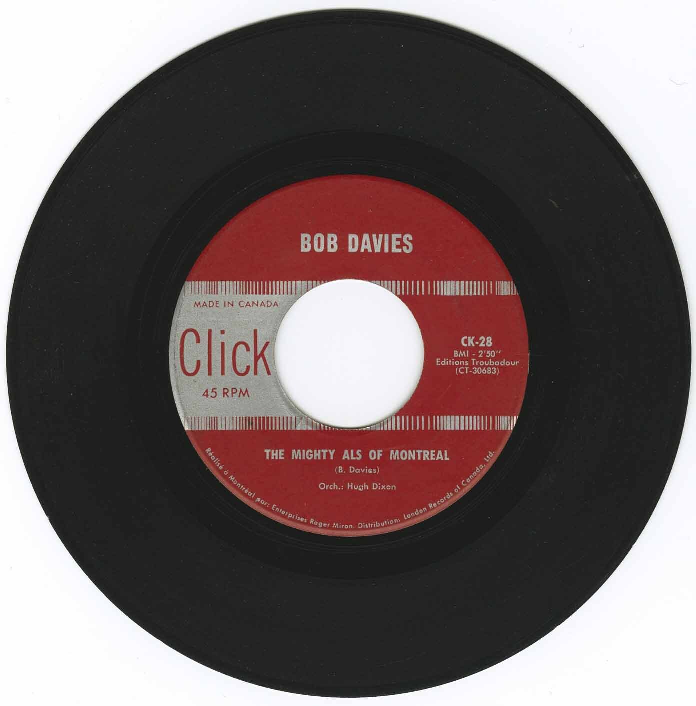 Davies, Bob - The Mighty Als of Montreal b/w Until Your Love is Mine